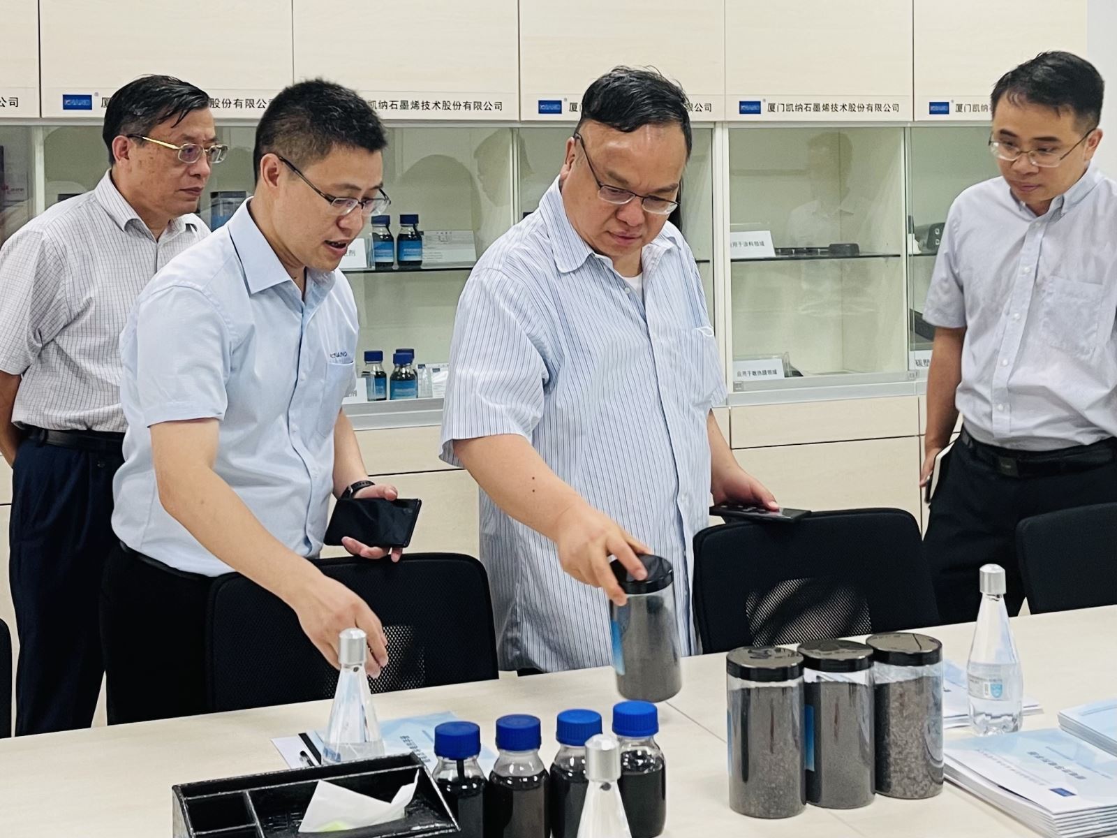 2021年6月29日上午,在海發(fā)集團黨委副書(shū)記、公司副總裁范筱林陪同下,華為技術(shù)有限公司創(chuàng )始人之一、高級副總裁鄭寶用一行到訪(fǎng)廈門(mén)凱納。凱納公司董事總經(jīng)理方崇卿、技術(shù)總監洪江彬等在公司生產(chǎn)基地向各位來(lái)訪(fǎng)領(lǐng)導介紹了公司發(fā)展情況、核心石墨烯材料及未來(lái)規劃。